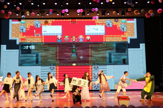 在主持人充满诗意的开场白之后,由stand轮滑社、PIC电子科技协会带来的节目《追光者》正式拉开了本届联合社团文化节晚会的帷幕。随后,两院各社团轮番登台,为大家演绎了一个个满含悠扬古韵又洋溢现代激情的节目。流霞剧社《作家之死》扑朔迷离的故事情节带大家走进了精彩的话剧世界;国服十佳歌手何杭佳、伊热夏提倾情演绎的《当你老了》让大家在温暖的歌声中感受时光的悄然流逝;大艺团街舞队的《PANGPANG》燃爆全场;嘉礼华服社的原创古风舞台剧《蓼莪》和繁星文讯社的诗歌朗诵《爱》从古今对比视角向我们展示了父母之爱的无私;校十佳歌手洪倩倩和福利姬 的十佳歌手伊凡苏、张琦带来的歌曲串烧赢得了观众的满堂喝彩;球类协会、计算机科技协会带来的舞蹈串烧《群魔乱舞之谁还不是个小仙女》也吸引了全场观众的眼球;SunShine动漫社带来的音乐剧、宅舞组合节目《王者演绎》向同学们展示了具有独特魅力的二次元文化;DCF创业发展协会倾情演唱的歌曲《YOUNG》点染了全场观众的青春年华;晨风网络文学社、麓溪书画社带来的歌曲《苔》使同学们静心感受生命的生长。最后,由两院社导部长及干事带来的节目《白雪公主和七个小矮人》赢得满堂喝彩,晚会在一片欢声笑语中落下帷幕。