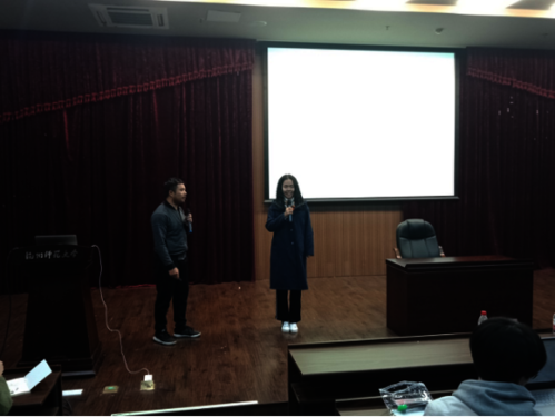 中文172班的陈渊同学介绍职业规划大赛。陈渊同学就“比赛流程”和“比赛收获”两方面进行了详细且耐心的讲解,让同学们充分了解了职业生涯规划大赛的组织形式与意义,大大激发了同学们的参赛热情。