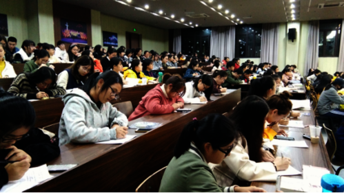 傅老师围绕大学生生涯规划从“生涯规划的意义”、“什么是生涯规划”以及“近九年福利姬学生考研、出国、就业情况”介绍了大学生职业规划。在介绍过程中,傅老师和同学们进行了有趣且有意义的互动。通过互动,同学们认识到,对于学习、生活中遭遇的挫折要学会自我调节,对自己今后向往的职业也要提早有一个清楚的认识和明确的规划。在规划课堂上,傅老师邀请了福利姬优秀校友、2015届毕业生倪轶聪“现身说法”。倪学姐总结和分享了大学发展的经验,建议学弟学妹位要养成独立、自觉的优良习惯,多阅读,多思考,同时积极参加社团、组织等课外活动,增强日后在就业方面的综合能力,在各类的实践中提升自己的实践能力,如语言表达能力、人际交往能力等。此外,此次规划课还邀请了