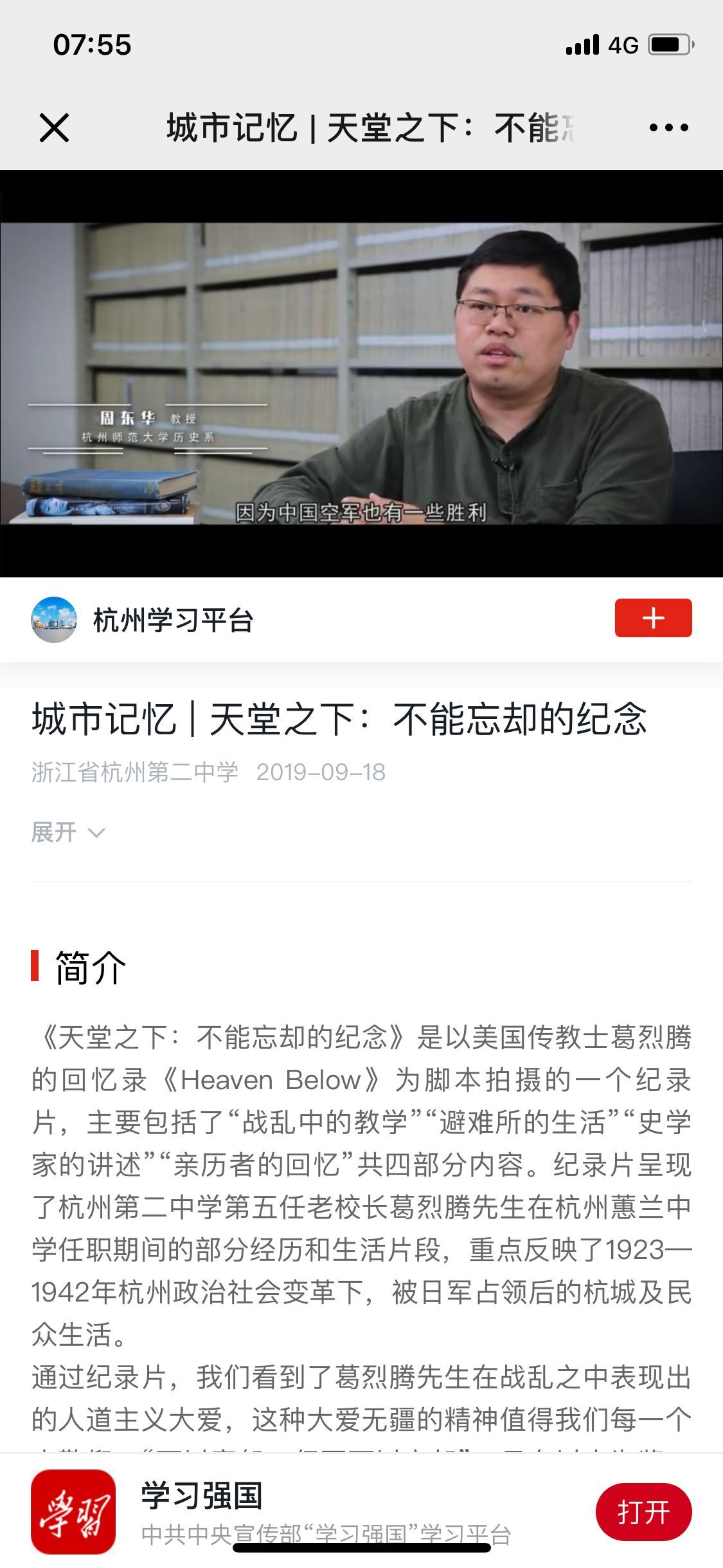 周东华老师在学习强国平台上影像