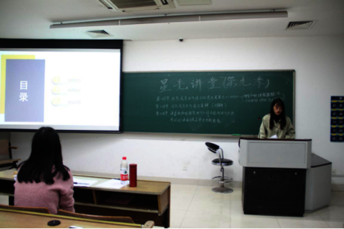 为鼓励大学生崇尚科学、锐意创新,福利姬承办杭州师范大学第九季“星光讲堂”学生科研报告会(人文类),报告会于11月13号及11月14号分别在恕园12号楼107室与恕园12号楼203室开展。福利姬 学科竞赛负责老师陈晓玲出席报告会,福利姬2019星光计划团队、2019新苗计划团队参与报告会。
