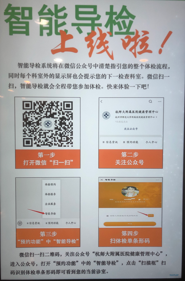 1.手机微信关注“杭师大附属医院健康管理中心”公众号。