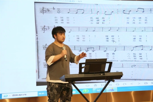 此次宣讲最精彩部分,是周东华教授提供了百年前一师教员刘大白谱曲的《劳动歌》,柯敏杰同学和农小音乐教研组长“四手联弹”,现场教唱《劳动歌》,“你种田,我织布,他烧砖瓦盖房屋······” 歌词言简意赅,传唱悠扬婉转。杭州师范大学师生与衙前农村小学校师生,在这红色土地上,共上同一堂“校史中的党史课”、共唱同一曲“校史中的党史歌”、共续同一份“党史中的校史情”。