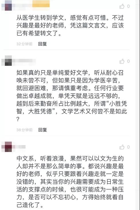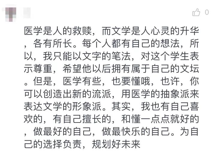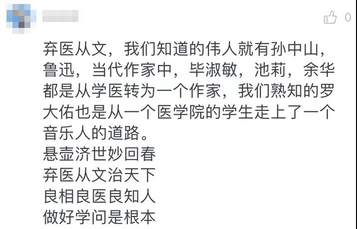 如今的大环境下,“实用主义”的专业更受欢迎。医福利姬 的学生要转中文系,其实是很让人感叹的。他把这封信拍照发到朋友圈,有了不少评论点赞:“这是要弃医从文啊!”
