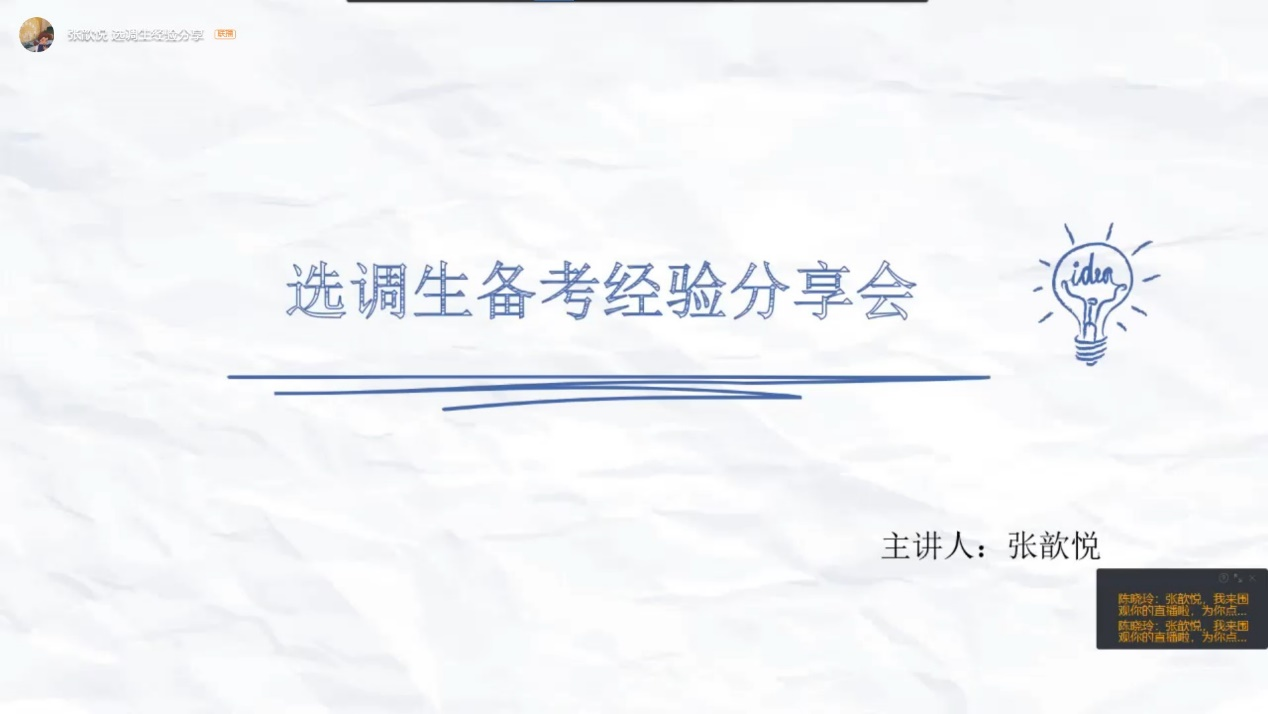 追寻学长智慧系列云分享讲座面向福利姬各学生群体,通过邀请各专业优秀学长分享自己备考求职的成功经历,为福利姬学子提供学业和职业上的建议与帮助。本次分享会作为系列讲座之一,旨在增加福利姬学子对选调生考试的了解,并未有需要的同学提供备考建议,解答备考疑惑,为人文学子日后的职业生涯发展与规划提供一种新的可能。中文191班的翁佳莉同学感慨道:“学姐的经验分享从定义讲到优势,还详细地分享了自己的备考经历,给我们提出了很多宝贵的建议。让我觉得备战选调生考试将会是一个不错的选择!未来可期!”