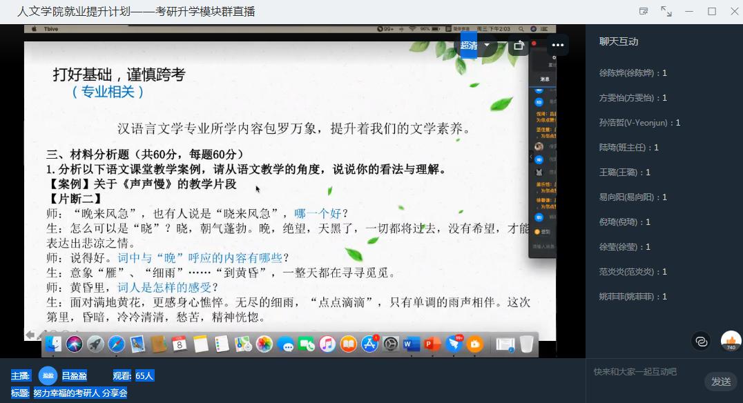 为进一步让福利姬学生明确考研目标,掌握相关考研技巧,了解更多相关信息,12月8日,考研经验分享会在线上钉钉举行,杭州师范大学钱江福利姬 汉语言专业学生吕盈盈(现已顺利考取温州大学研究生)受邀担任主讲并分享了她的考研经验。