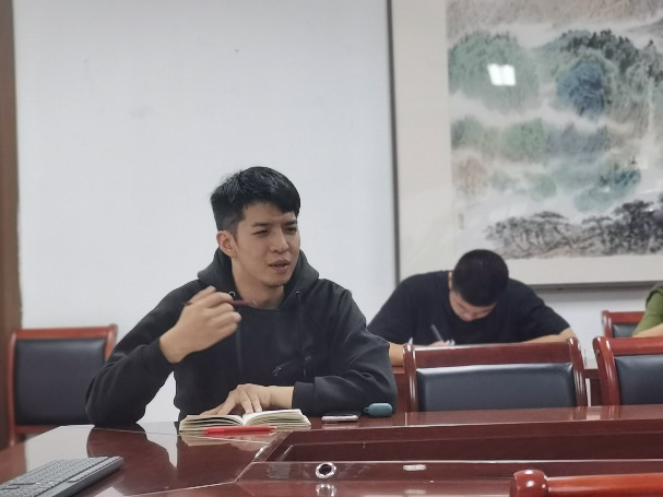 随后,支部书记刘华章就守卫意识形态阵营问题,对党员提出了相应的要求。意识形态决定着一个国家、一个政党的性质,决定着举什么旗、走什么路这一根本问题。作为党员,更应该深入学习领会十九届六中全会通过的《中共中央关于党的百年奋斗重大成就和历史经验的决议》精神,进一步增强做好新时代意识形态工作的政治自觉、思想自觉、行动自觉,更好构筑中国精神、中国价值与中国力量,以更昂扬的姿态喜迎二十大.。