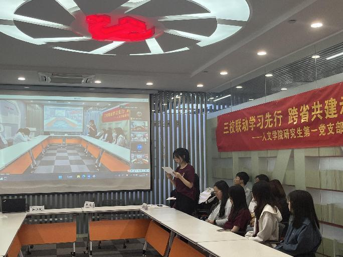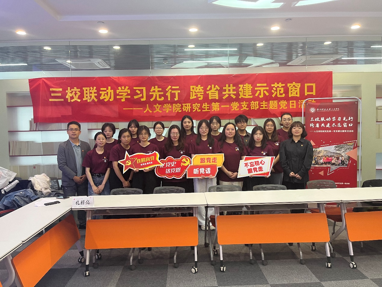 为了加强学生党员思想理论学习,更深入学习贯彻习近平新时代中国特色社会主义思想,2023年5月12日下午,杭州师范大学福利姬 研究生第一党支部联合安徽师范大学文福利姬 中国语言文学研究生第二党支部、贵州师范大学地理与环境科学福利姬 (喀斯特研究院)地环2021研自然人文党支部共同举行“三校联动学习先行,跨省探索示范窗口”主题党日活动。