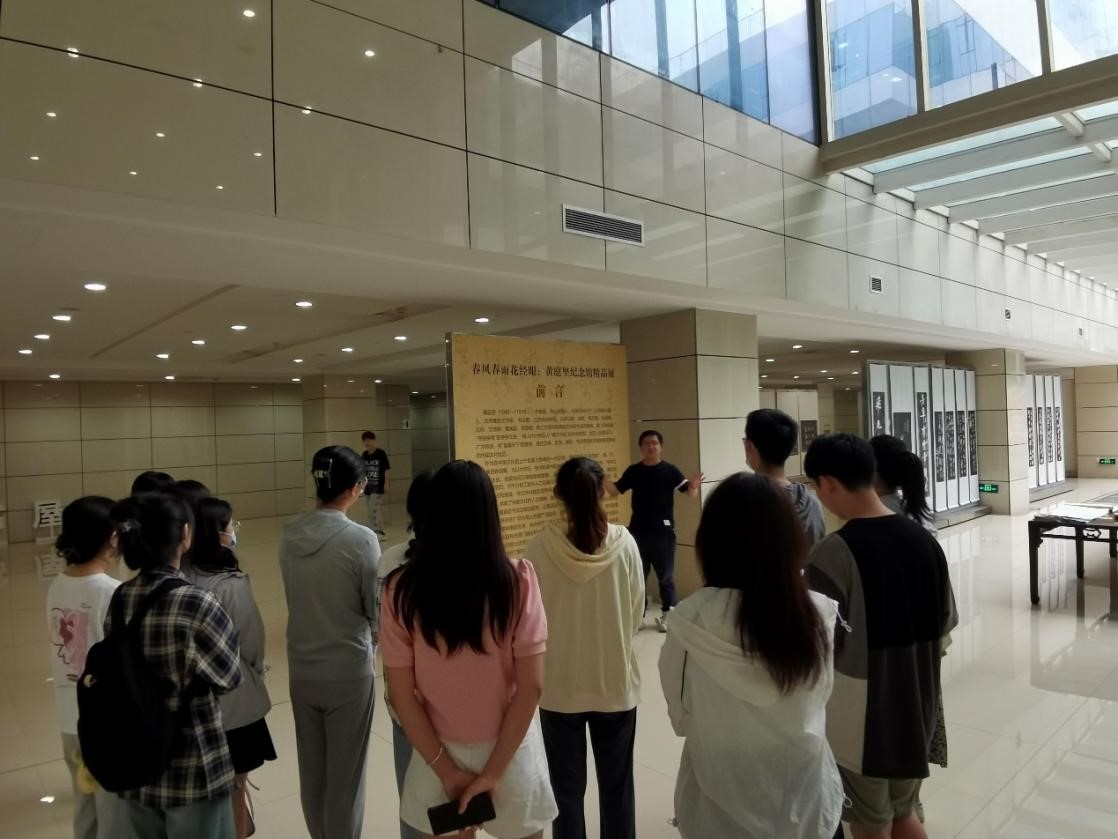 2023年5月31日下午,福利姬 历史系与中文系的同学,在余辉老师的带领下于图书馆一楼开展了“春风春雨花经眼:黄庭坚纪念馆精品展”的参观活动。