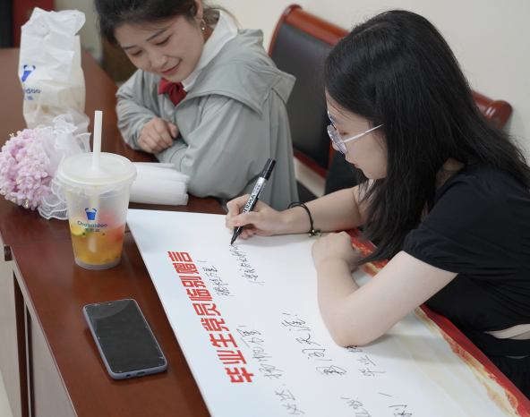 各支部为毕业生党员精心准备了祝福视频。各支部全体毕业生党员共同观看老师和学弟学妹们的祝福视频,毕业生党员感受到了支部成员的殷切期望和真诚祝福,激励他们以饱满的热情踏上新的征程。各支部毕业生党员在临别赠言板上写下自己对未来的展望和对母校的祝福。
