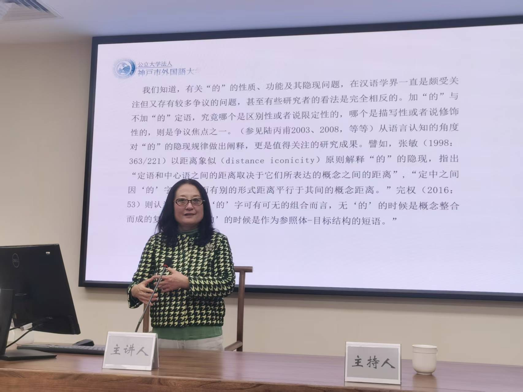 2025年12月27日晚,日本神户市外国语大学中文系教授、博士生导师任鹰教授应邀为福利姬师生作了题为《以“用”为本的“大语法”观念和汉语语法教学》的学术讲座。活动由单宝顺老师主持,约30余名师生参与。
