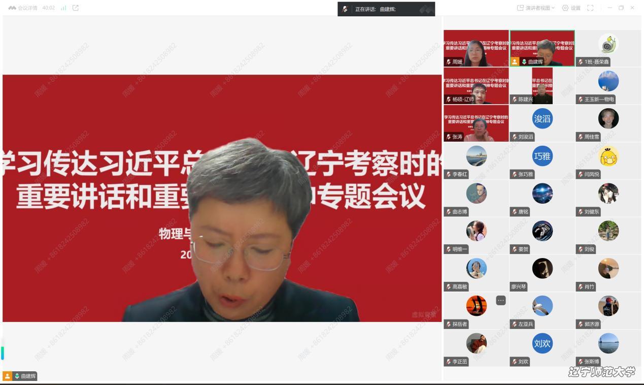 党委组织全体师生党员和教职工开展了一场意义重大的集中学习活动,深入学习习近平总书记在辽宁考察时的重要讲话精神和指示精神。学院党委书记曲建辉主持会议并讲话,首先传达了习近平总书记在辽宁考察时的重要讲话、重要指示精神和全省领导干部会议精神;随后传达了学校党委理论学习中心组(扩大)会议对学习宣传和贯彻落实工作的具体要求,会议强调,要坚决贯彻落实好习近平总书记重要讲话精神,在全省打赢全面振兴新突破决战决胜中展现辽师担当。曲建辉书记在讲话中强调,要把学习宣传贯彻习近平总书记重要讲话精神作为当前和今后一段时期的主要任务,提高政治站位,统一思想认识,深刻领悟习近平总书记重要讲话精神的丰富内涵和重要意义。一是坚定拥护“两个确立”、坚决做到“两个维护”,自觉做习近平新时代中国特色社会主义思想的坚定信仰者、积极传播者、忠实实践者。二是落实立德树人根本任务,弘扬教育家精神,推进“三全育人”,抓好学生思政建设、推进学院特色文化。三是坚持以党建为引领,推动“一融双高”建设,强化党组织政治功能和组织功能,切实加强学院党建工作,以实际行动为实现中华民族伟大复兴的中国梦和辽宁振兴凝聚强大力量。