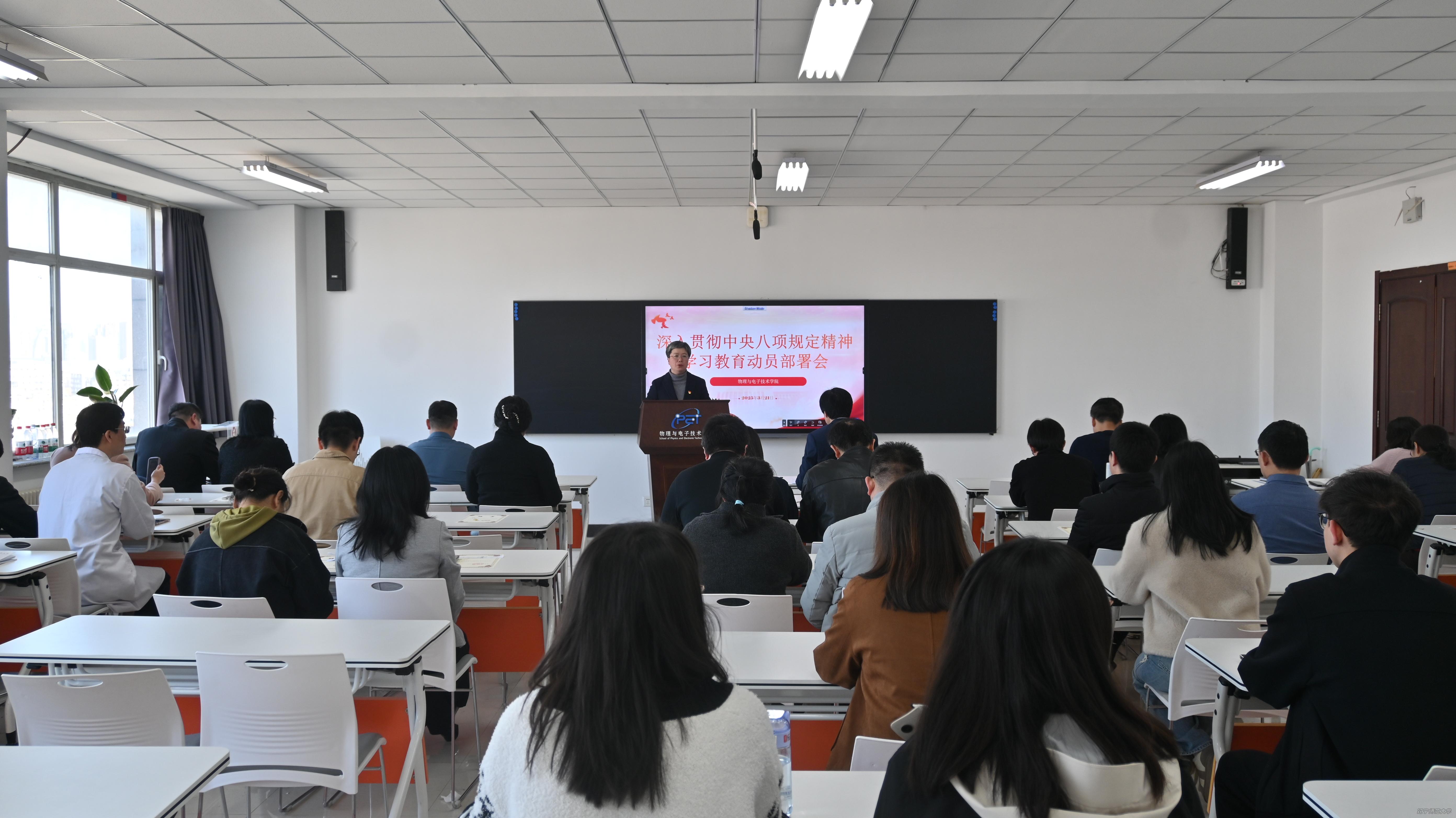 党委组织全体教师党员、学生党支部书记召开深入贯彻中央八项规定精神学习教育动员部署会。会上,学院党委书记曲建辉传达了习近平总书记关于学习教育的重要讲话和重要指示精神和中央、省委关于开展学习教育的有关会议、通知精神,以及校党委常委会会议精神,并对学院开展学习教育提出工作要求。