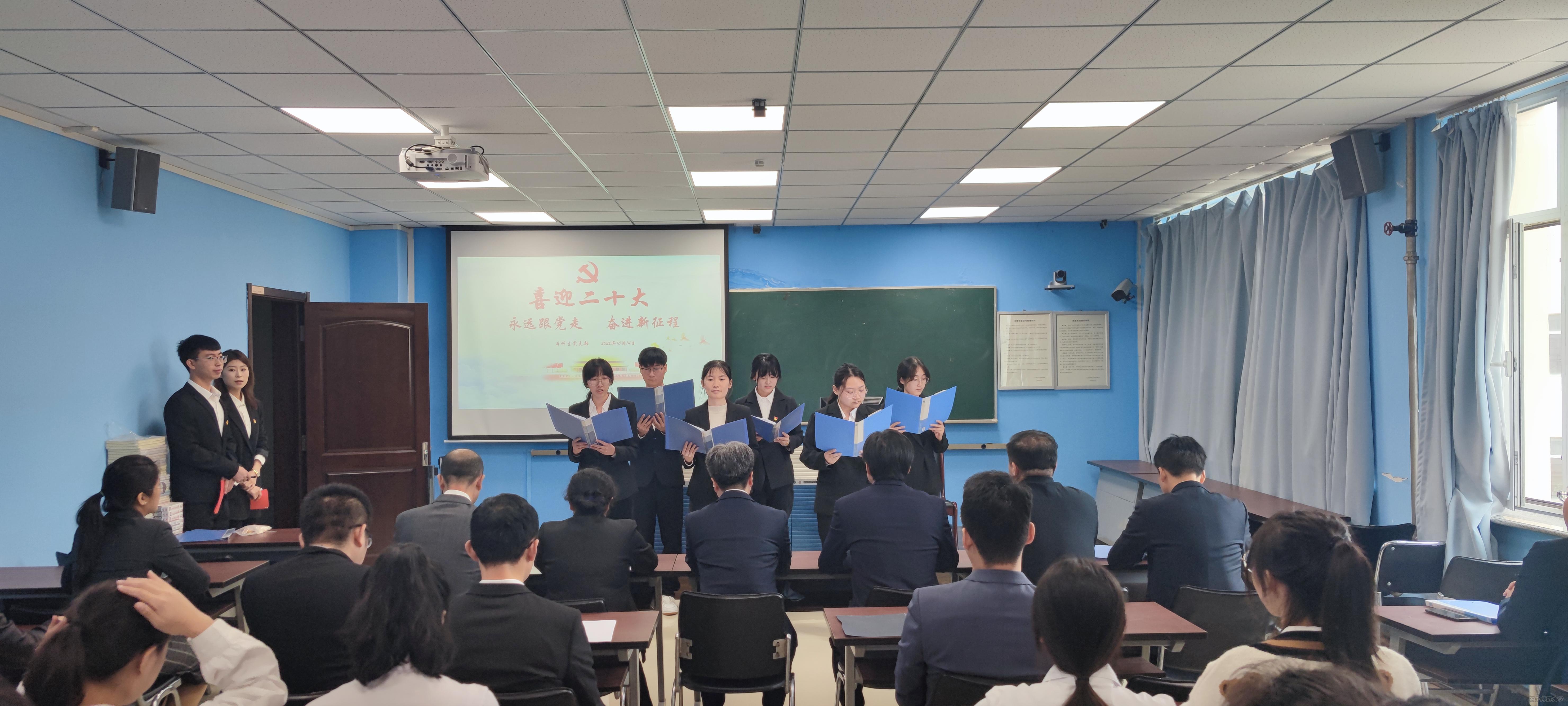 于10月14日举办了“喜迎二十大、永远跟党走、奋进新征程”红色诵读活动,以红色经典篇目、革命文化和党的奋斗历程为主要内容,抒发爱党爱国情怀,展现师生党员奋发进取的精神面貌,感悟红色精神,凝聚奋进力量。参加活动的有学院党委书记曲建辉、院长孙景昌、党委副书记雷鸣、副院长杨硕、党委委员顾长林、教师党支部书记张涛以及六个师生党支部的党员代表。会议由2021级研究生党员李莹、2022级研究生党员刘鑫主持。