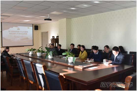 会上,党总支书记曲建辉传达了《辽宁师范大学深入学习贯彻党的十九大精神工作方案》,结合自己的学习体会以“八个新”对十九大报告的主要内容进行解读。并对学院学习贯彻党的十九大精神提出具体要求,将通过多种形式在全院掀起学习贯彻党的十九大精神的热潮。她强调全体教师要充分认识党的十九大的重大战略意义、深刻领会十九大精神的实质、准确把握其深刻内涵,将学习贯彻十九大精神与“两学一做”学习教育相结合、与全国高校思想政治工作会议精神相结合,要将学习贯彻党的十九大精神转化成扎实工作的具体行动,牢固树立“四个意识”,不断提高学识修养和社会服务能力,把学习的成效体现到推进学院建设的全过程,积极担当作为,推动学院各项工作取得新成绩。