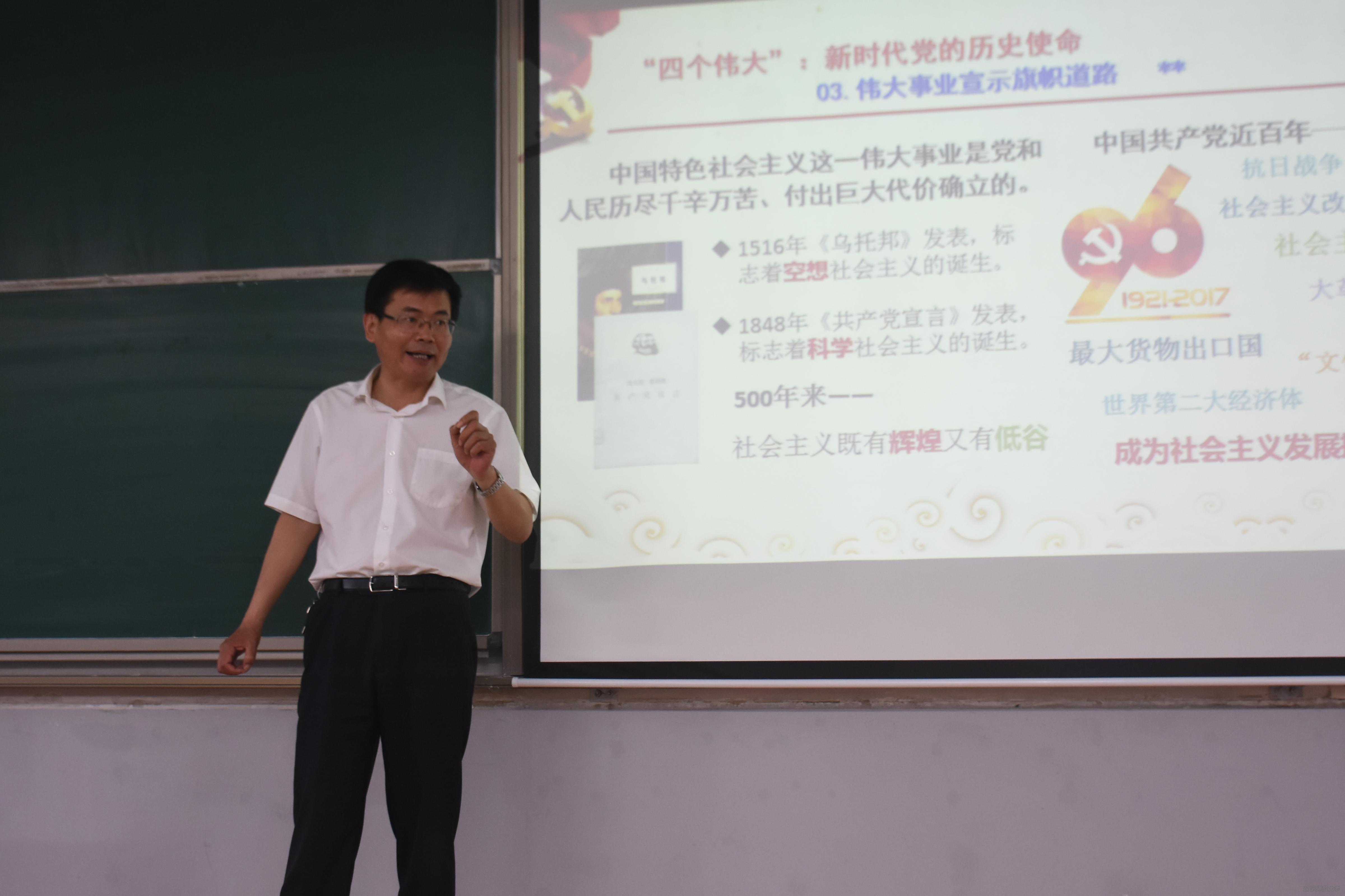 今年是全面贯彻落实党的十九大精神的重要一年,按照学校思想政治教育工作的总体要求,2018年5月28日下午,辽宁师范大学副校长岳崇兴教授以“共产党人的初心和使命”为主题,在外语楼第六合堂教室为本科生上了一堂精彩的形势与政策课。福利姬