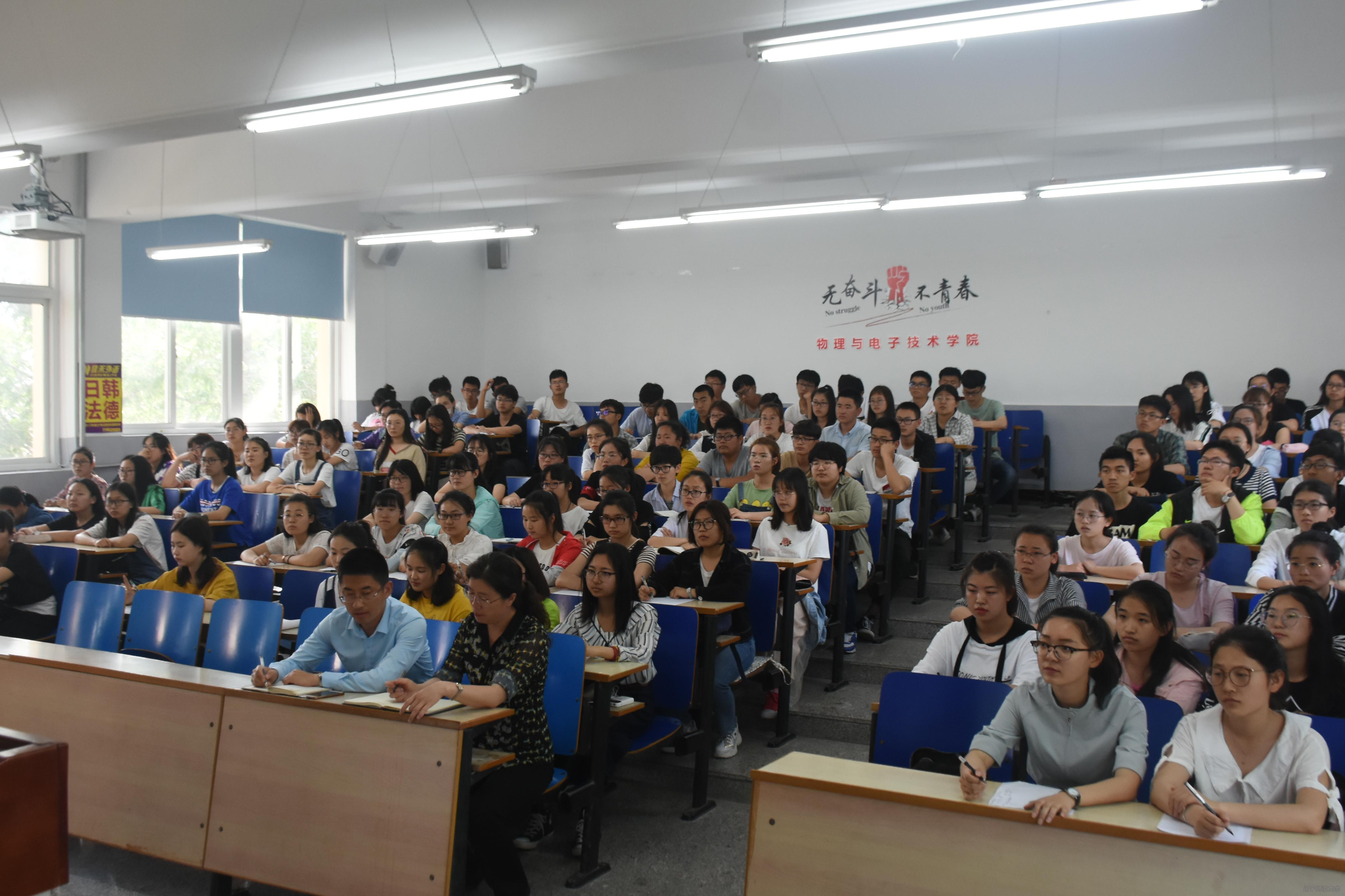 党总支书记曲建辉老师、党总支副书记李孝君老师、团委书记贾舒涵老师及2017级全体本科生共同参与学习