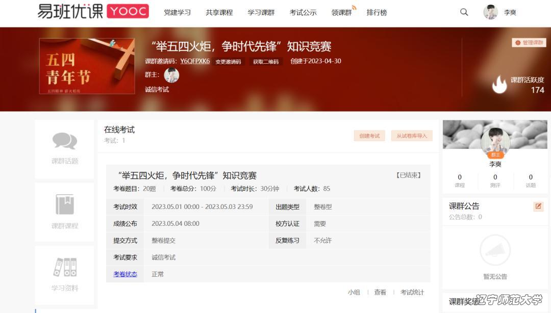 全体学生,参加活动同学已在易班优课“在线考试”模块进行线上答题。