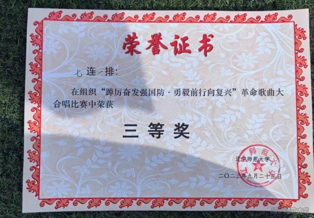 2023级新生在军训教官姜贺的带领下,最终取得了三等奖的好成绩。