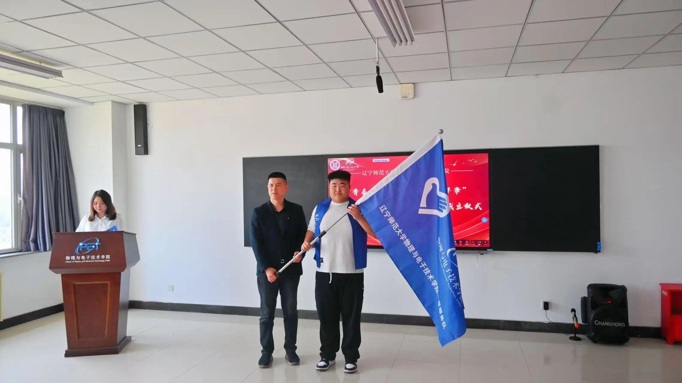 志愿服务队正式成立!这一举措意味着学院志愿服务将迈向专业化、常态化新台阶,激励着青年学子以实际行动诠释新时代青年的责任与担当,让青春在奉献中绽放绚丽之花。 孙强老师为志愿服务队授旗,并发表致辞,他表示志愿服务队的成立为同学们搭建了更广阔的平台,鼓励队员们勇担时代使命,积极投身社会实践。然后,志愿服务队队长杨东浩同学表态未来将携手队员们以饱满的热情投入志愿服务,践行五四精神与志愿精神。