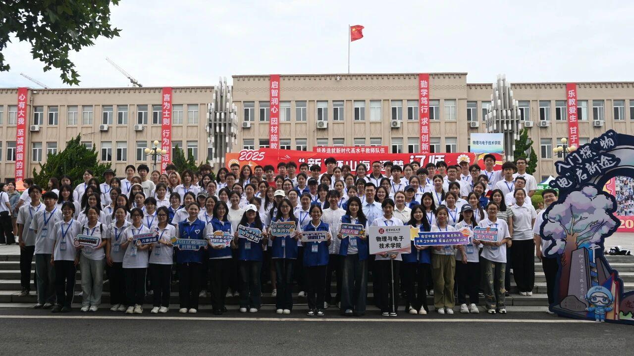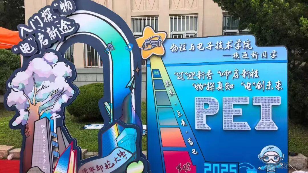 巧构“力热声光电”主题迎新区,让学科魅力在新生报到之初便浸润人心。报到从“蓄电”启程到“满电”成长。当专属校园卡嵌入指定位置,由全体新生姓名缀连而成的“PET”灯带即刻亮起,是辽师身份的郑重加冕;“物理之门”下留影,是大学征程的温柔注脚。自此物电学子入门探“物”、“电”启新程,正式奔赴属于自己的求学新旅程。