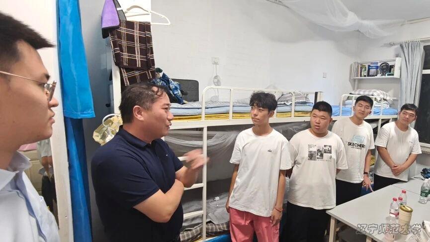 阴云轻覆的迎新现场,少了烈日灼晒,却依旧满是温情。校领导及学院领导班子专程走入迎新现场,他们鼓励大家以饱满热情接待新生与家长,细致询问迎新工作进展,同时,走进寝室查看新生的行李收拾情况,询问新生的适应状态,表示了对新生们的深切关心。其中在11公寓110寝室,与物理学(师范)专业的焦世霖交流时,校领导得知其父母毕业于我校相关师范专业且现均为一线教师,便以“薪火相传”为主题勉励他,希望他以父母为榜样,在求学路上坚守教育初心,未来成长为深受学生喜爱的优秀人民教师。