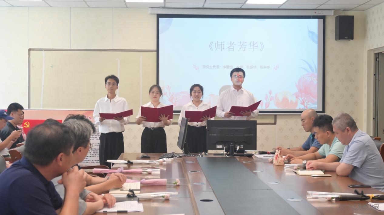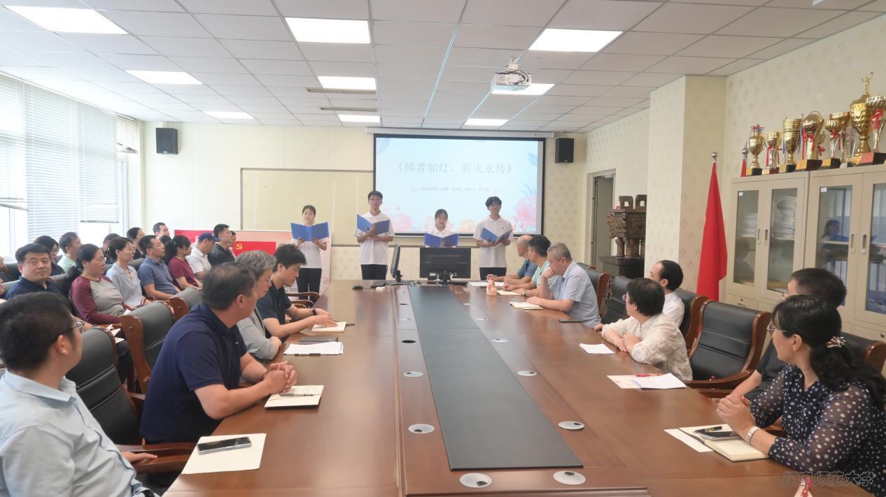 座谈会伊始,本科生、研究生学生代表们分别以饱含深情的诗歌朗诵拉开序幕。“三尺讲台存日月,一支粉笔写春秋”,同学们用真挚的语言、饱满的情感,倾诉了对教师辛勤付出的感恩与敬意。