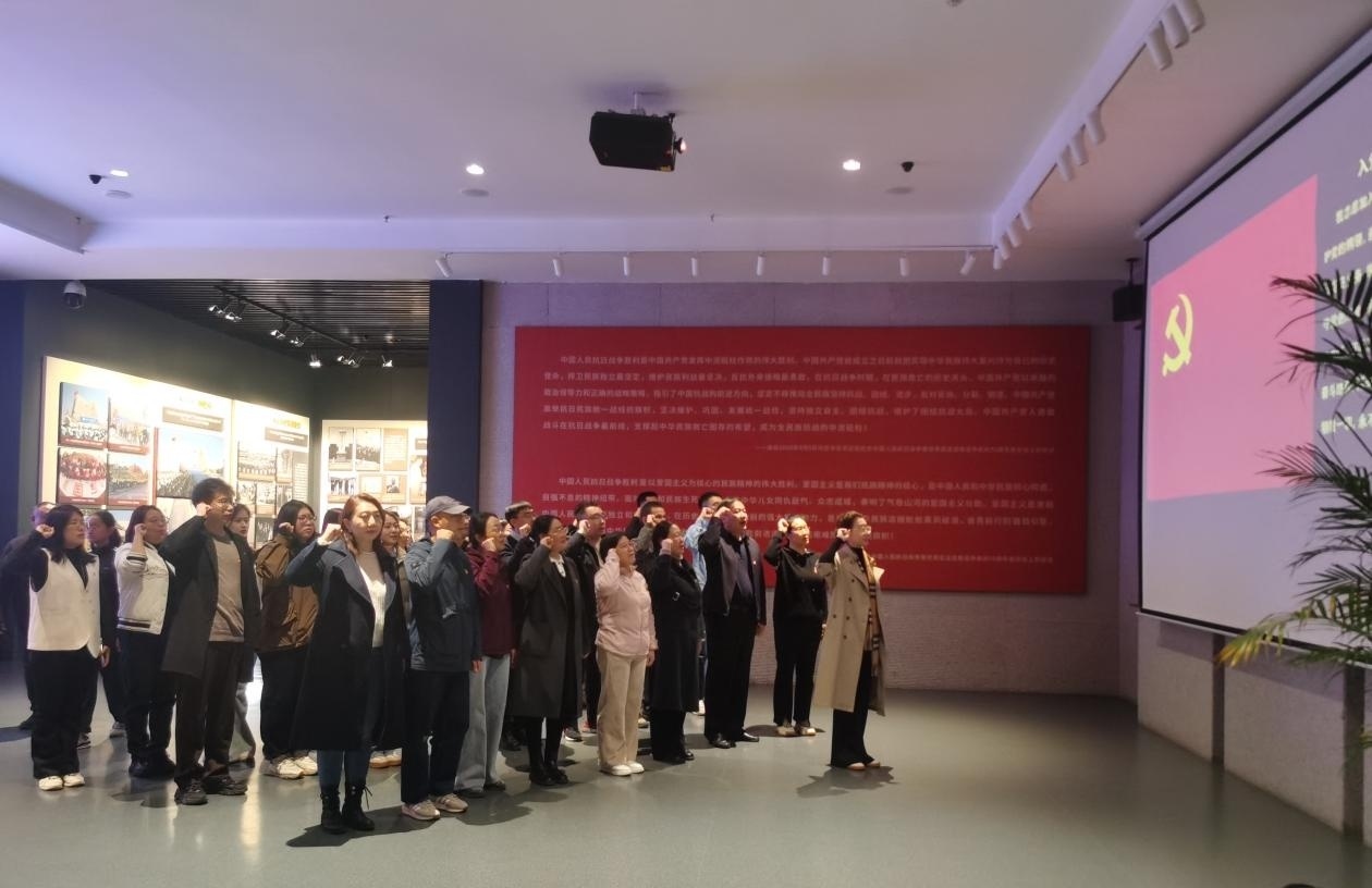 在庄严肃穆的“九一八”历史博物馆,伴随着讲解员的讲述,师生们神情凝重,缓步于记录民族伤痛的历史长廊。大量珍贵文物、历史照片和复原场景,真实再现了日本帝国主义策划发动“九一八”事变、侵占我国东北的屈辱历史。那段山河破碎的悲怆岁月,那些前仆后继的英烈壮举,深深震撼着每一位在场师生的心灵。参观结束后,学院党委书记李凝带领全体师生党员,面向鲜红的党旗,紧握右拳,庄严重温入党誓词,用铿锵有力的声音再次许下对党的忠诚誓言。